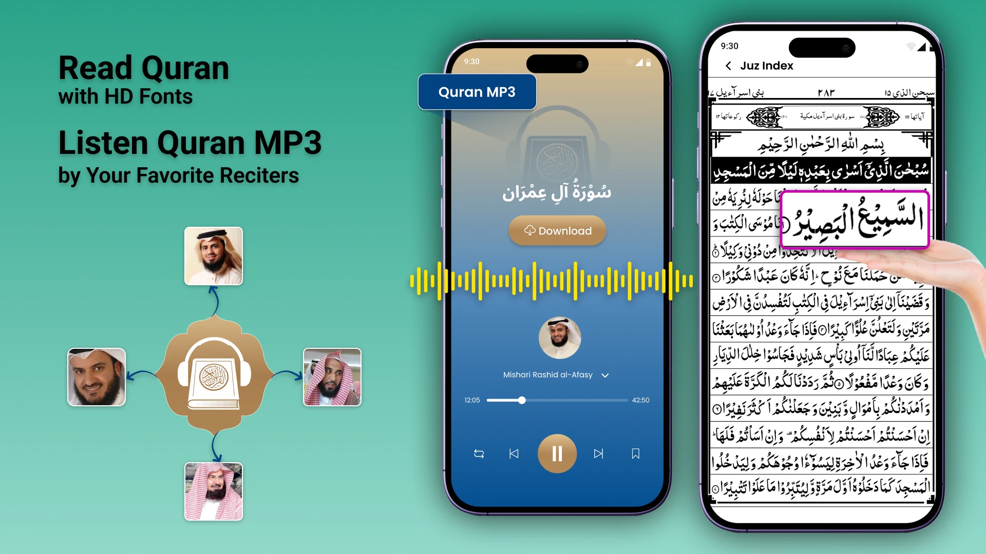 A: The app typically includes 4-5 popular recitations (like Mishary Rashid Alafasy, Abdul Rahman Al-Sudais) along with multiple translations, allowing users to study the Quran in various languages and vocal styles.