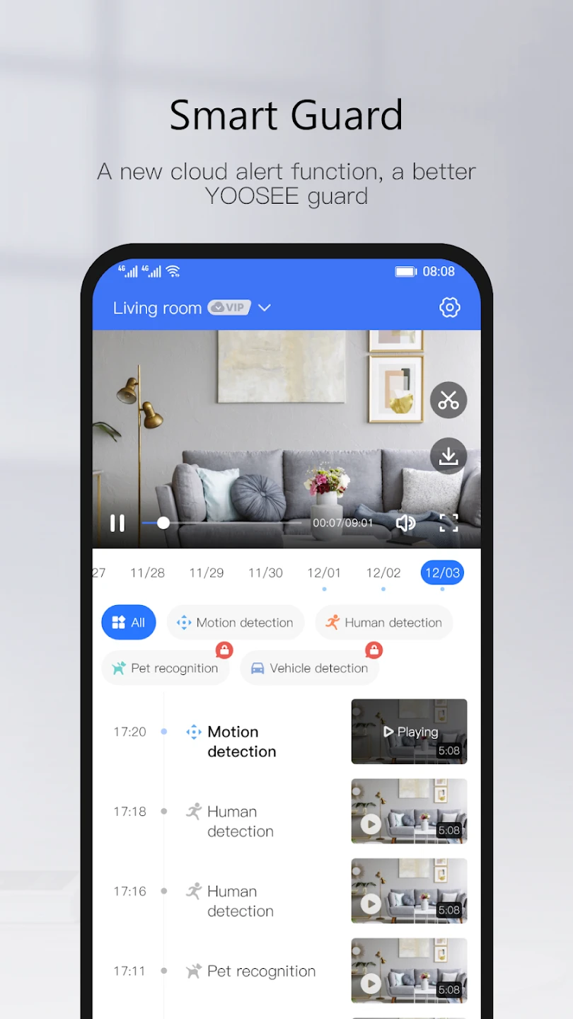 - Motion Detection Alerts: Receive notifications instantly when motion is detected within the camera’s field-of-view. By enabling intelligent detection modes and configuring alert schedules, Yoosee ensures timely warnings only for relevant activities, reducing false alarms and focusing your attention on genuine security concerns for a more efficient monitoring experience.