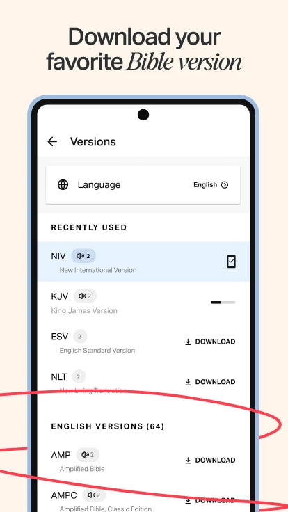 - Offline Reading & Listening: Save favorite books, chapters, or specific audio readings directly on the device for access without an internet connection, perfect for travel, commuting, or areas with limited connectivity. This solves the problem of unreliable internet access and enhances the user experience by ensuring availability anytime, anywhere, making consistent Bible engagement more reliable.
